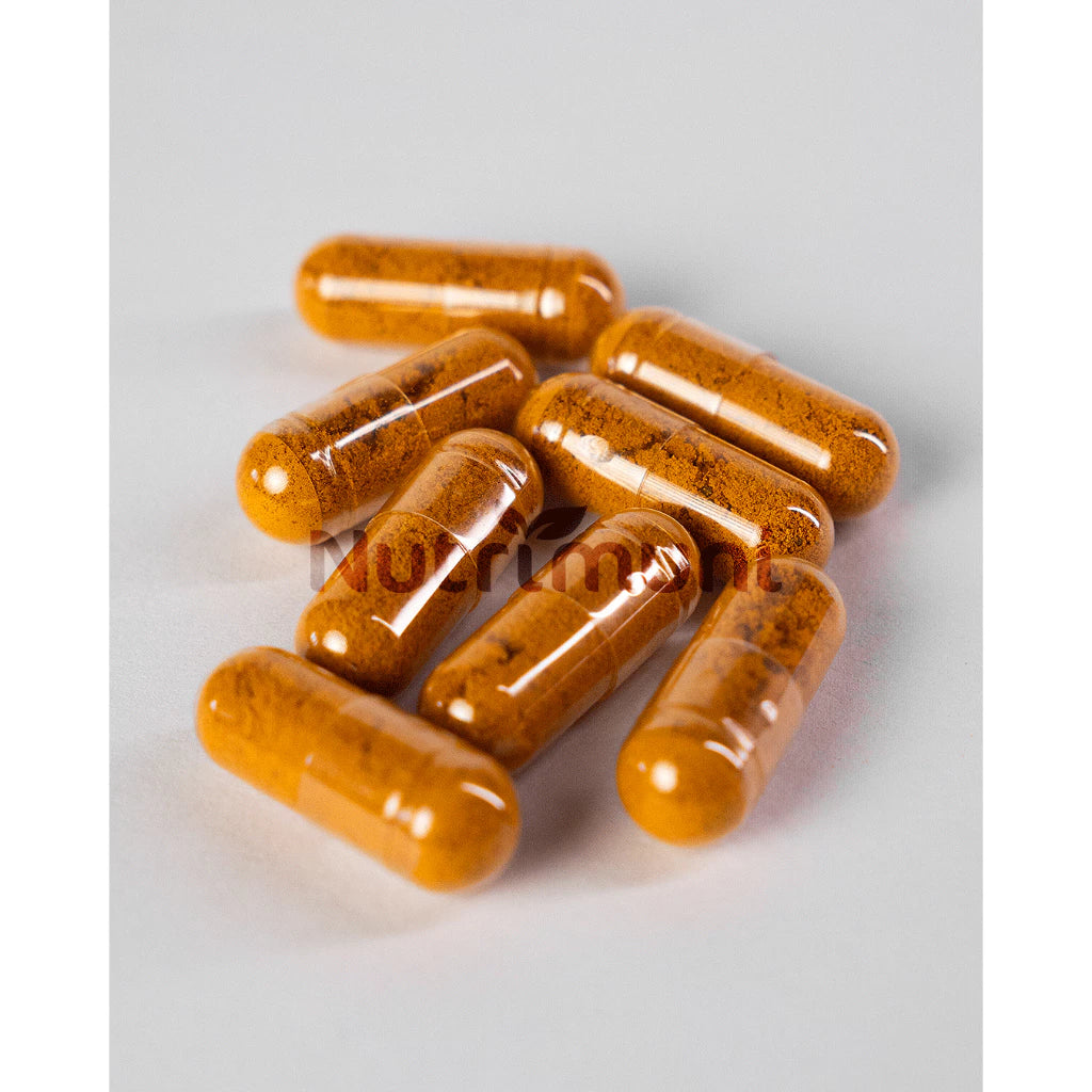 - Cúrcuma Longa 100% Pura e cápsulas de gelatina.