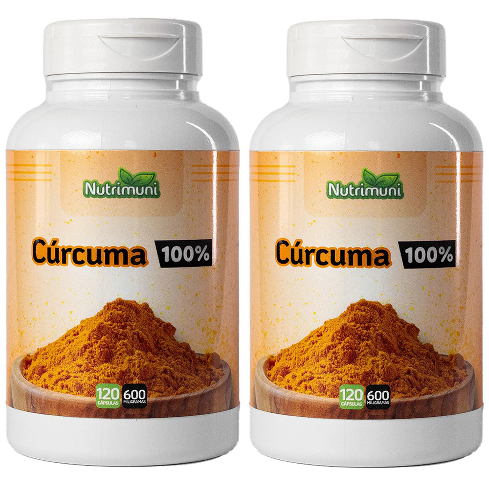 2 Potes Cúrcuma Longa 100% Pura com 240 Cápsulas Gelatina 600mg, cada pote contém 120 cápsulas de 600mg
